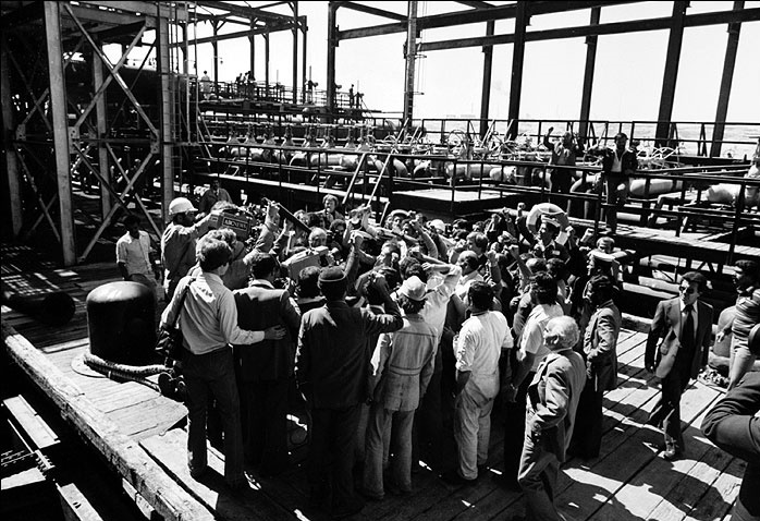 به گزارش پایگاه اطلاع رسانی شرکت پایانه های نفتی ایران، در سال 57، اعتصاب کارکنان پالایشگاه نفت آبادان به فرمان امام خمینی( ره) باعث قطع تولید 600 هزار بشکه نفت در روز در آبادان و سپس در جزیره خارک شد که این امر دلهره عجیبی در دل غربیها به ویژه آمریکا انداخته بود به طوری که آنها برای تولید مجدد نفت از سوی ایران حاضر به هر کاری بودند.