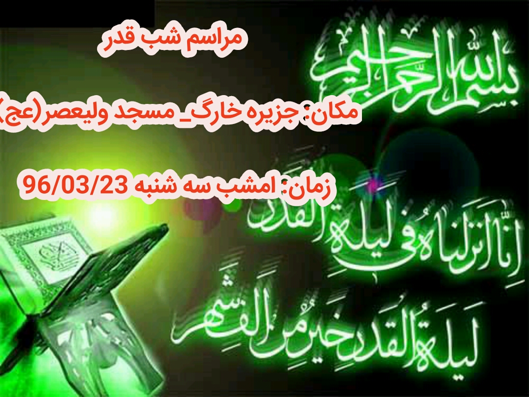 به گزارش پایگاه اطلاع رسانی شرکت پایانه های نفتی ایران این مراسم معنوی امشب در مسجد ولیعصر(عج) در پایانه نفتی خارگ از ساعت ۲۲ با تلاوت قرآن کریم و قرائت دعای جوشن کبیر آغاز می شود.