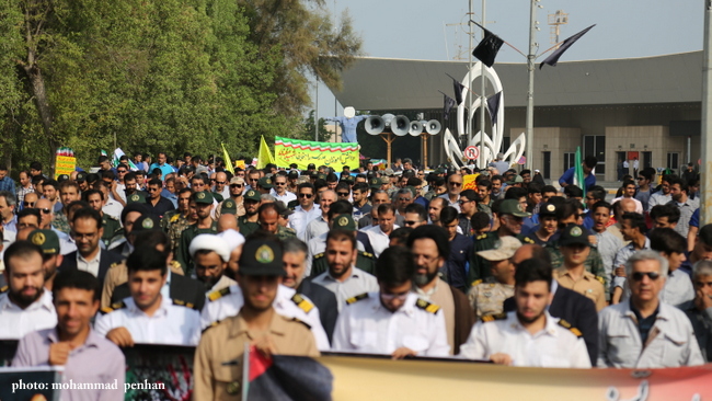 مراسم راهپیمایی از گلزار شهدای گمنام شروع و تا مسجد ولی عصر( عج) خاتمه یافت.