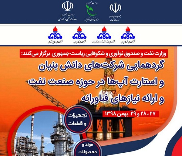 به گزارش پایگاه اطلاع رسانی شرکت پایانه های نفتی ایران، مطابق با سیاستهای کلی نظام و تمهیدات دولت خدمتگزار در حمایت از شرکتهای دانشبنیان، استارتآپها و کسبوکارهای نوآورانه در سالی که از سوی مقام معظم رهبری (مدظلهالعالی) به عنوان سال «رونق تولید» نامگذاری شده است، وزارت نفت در نظر دارد با همکاری صندوق نوآوری و شکوفایی ریاست جمهوری گردهمایی شرکتهای دانشبنیان و استارتآپهای فعال در حوزه صنعت نفت را از ۲۷ لغایت ۲۹ بهمنماه ۱۳۹۸ در پژوهشگاه صنعت نفت برگزار کند.
