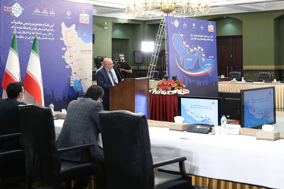 به گزارش پایگاه اطلاع رسانی شرکت پایانه های نفتی ایران، بیژن زنگنه (پنجشنبه، پنجم تیرماه) در آیین بهرهبرداری از پتروشیمی میاندوآب، افتتاح واحد نرمال هگزان پالایشگاه شازند اراک و آغاز رسمی احداث خط لوله انتقال نفت خام گوره به جاسک و پایانه صادراتی در منطقه مکران که با دستور حسن روحانی، رئیس جمهوری به صورت ارتباط زنده ویدئویی انجام شد، طرح پایانه صادراتی نفت از جاسک را استراتژیکترین طرح این دولت به نقل از مقام معظم رهبری دانست و گفت: این طرح شامل خط لولهای به قطر ۴۲ اینچ یعنی بیش از یک متر و به طول هزار کیلومتر است که از گوره در استان بوشهر آغاز و پس از گذر از فارس وارد هرمزگان و به غرب جاسک به پایانه مکران به عنوان بزرگترین پایانه صادراتی پس از خارک در حال احداث است.