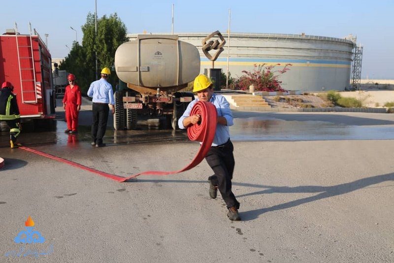به گزارش پایگاه اطلاع رسانی شرکت پایانه های نفتی ایران ، در این مانور موفقیت آمیز که با هدف بررسی عملکرد تیم آتش نشانی در هنگام برخورد صاعقه و اطفا حریق مخزن ذخیره سازی نفت خام انجام شد، واحدهای عملیاتی آتش نشانی به اجرای انجام عملیات اطفا حریق پرداختند. در این مانور ، با تماس تلفنی مرکز کنترل صادرات مبنی بر برخورد صاعقه به مخزن و آتش سوزی مخزن چهار خودروی آتش نشانی پایانه نفتی خارگ به محل اعزام ، که خودروها در شرق ، شمال شرقی، غرب و جنوب غربی مستقر شدند دو خودرو با استفاده از هوزکشی و اتصال به رایزرهای بالابرنده کف ضد حریق از طریق نازل های کفساز در بالای مخزن اقدام به اطفا نمودند، دو خودرو در ضلع شمال شرقی و جنوب غربی اقدام به خنک سازی بدنه مخزن بوسیله گرند مانیتور شدند و در نهایت با هوز کشی به بالای مخزن نسبت به لکه گیری اقدام گردید و عملیات اطفا پایان یافت و آبرسانی به خودروهای آتش نشانی با تانکرهای آب اداره ترابری بدون استفاده از خط آب آتش نشانی انجام شد.