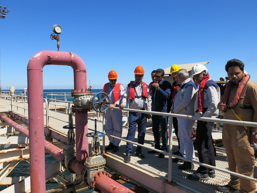 در ادامه در بازدید میدانی، عباس غریبی مدیریت ارشد شرکت پایانه های نفتی ایران به همراه سید محمدجواد موسوی رییس پایانه نفتی خارگ، ناظر و مجری پروژه روند پیشرفت پروژه تعمیرات و نوسازی اسکله شرقی را بررسی کردند.