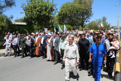 گفتنی است راهپیمایی روز قدس در جزیره خارگ از پارکینگ فرودگاه تا مسجد ولی عصر (عج) و در عسلویه از مصلی نماز جمعه تا بلوار امام خمینی (ره) برگزار شد.