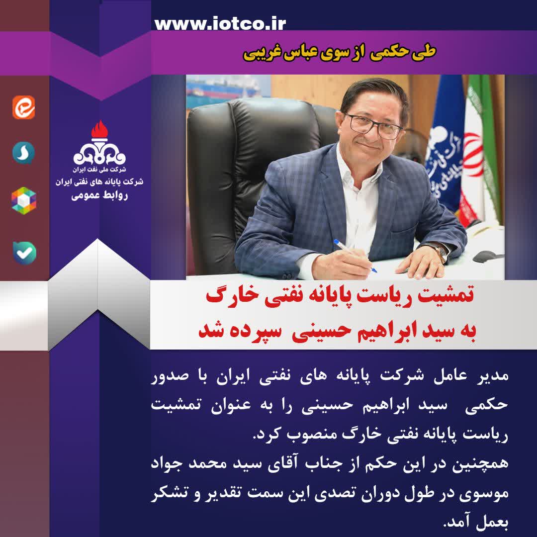 با عنایت به تجارب، تعهد و تخصص ارزشمند جناب عالی بدینوسیله تمشیت ریاست پایانه نفتی خارگ به جناب عالی تفویض میگرد. امید است با اتکا به خداوند متعال و بکارگیری تمام توان و تخصص همکاران محترم مستقر در پایانه نفتی خارگ در اجرای امور محوله موفق و موید باشید.
