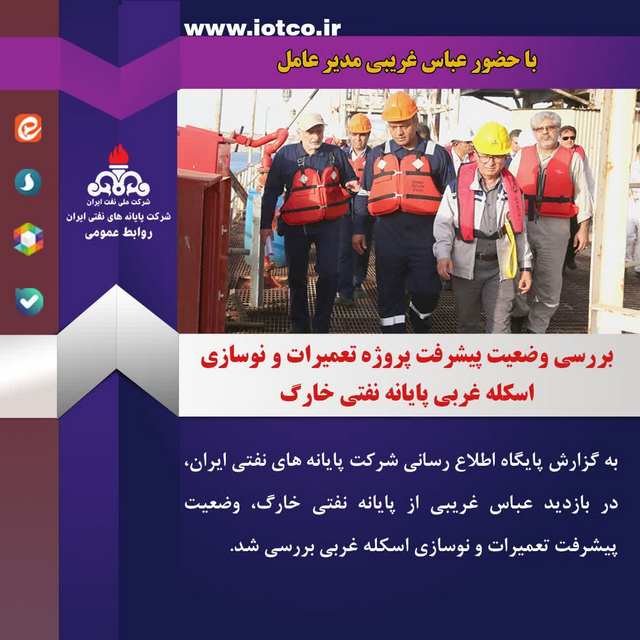 غریبی افزود : در این بازدید از نزدیک پیشرفت و مشکلات پروژه نوسازی و تعمیرات اسکله صادراتی غربی پایانه نفتی خارگ بررسی شد.