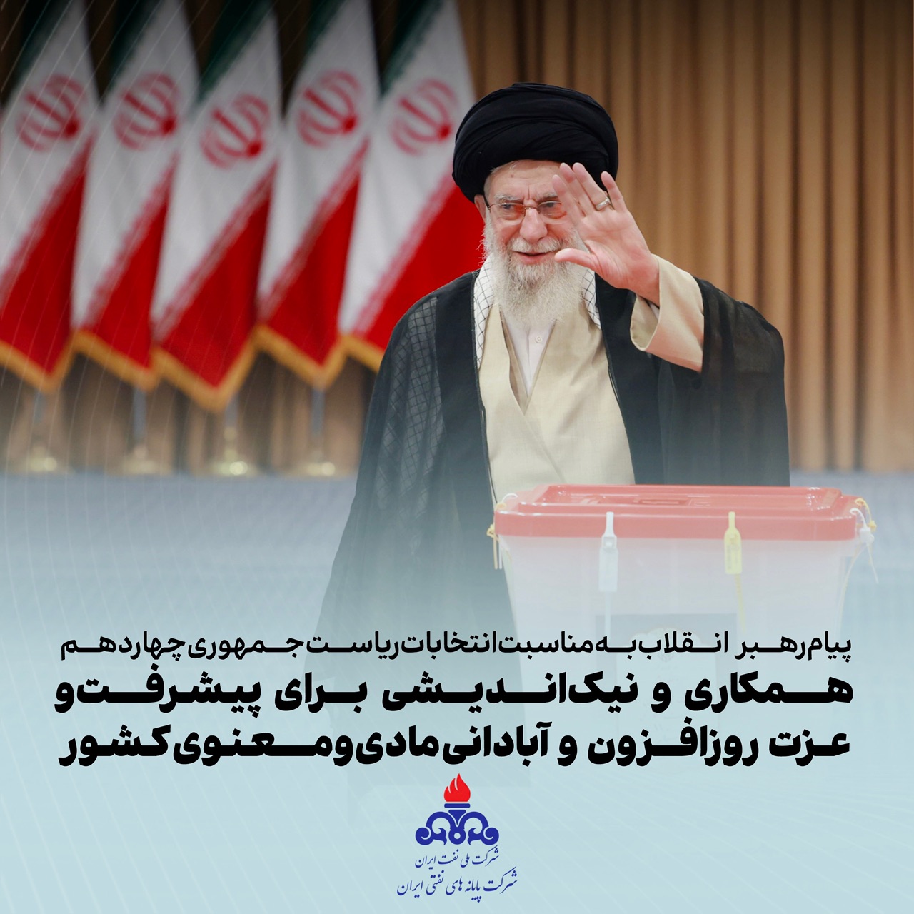 اکنون ملت ایران رئیس جمهور خود را انتخاب کرده است. اینجانب با تبریک به ملت و به رئیس جمهور منتخب و به همهی فعالان این صحنهی حساس مخصوصاً جوانان پرشور ستادهای انتخاباتی نامزدها، همگان را به همکاری و نیکاندیشی برای پیشرفت و عزت روزافزون کشور توصیه میکنم. شایسته است رفتارهای رقابتی دوران انتخابات به هنجارهای رفاقتی تبدیل شود و هر کس در حدّ توان خود برای آبادانی مادی و معنوی کشور تلاش کند.