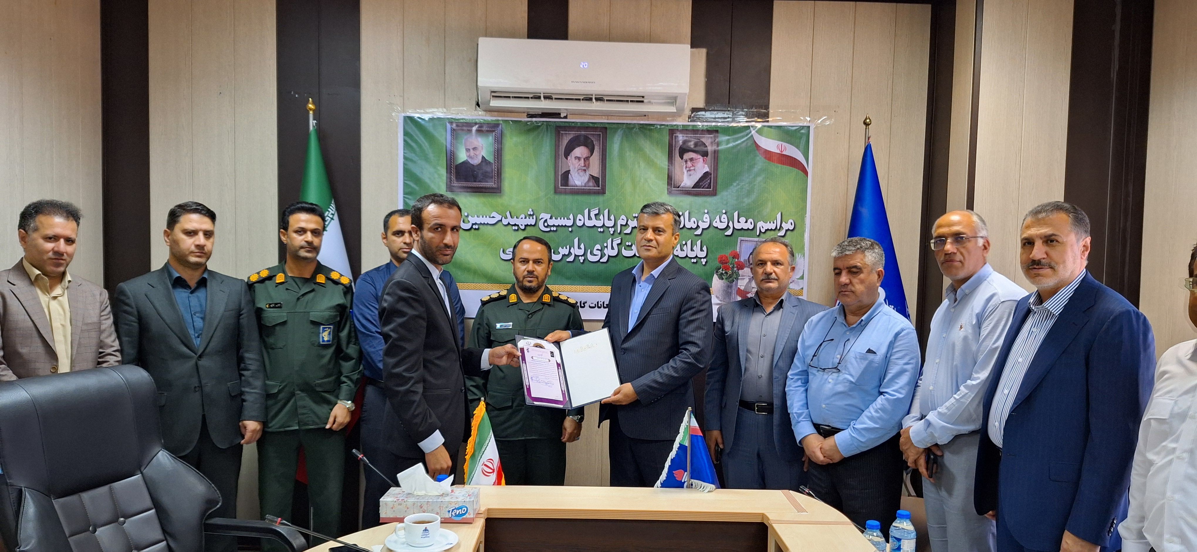 گفتنی است در پایان این مراسم احمد نوبخت به عنوان فرمانده پایگاه مقاومت بسیج شهید خرازی پایانه میعانات گازی پارس جنوبی معرفی شد.