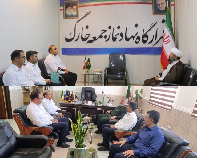 دیدار رئیس پایانه نفتی خارگ با امام جمعه و فرمانده ناحیه مقاومت بسیج  به مناسبت هفته دفاع مقدس