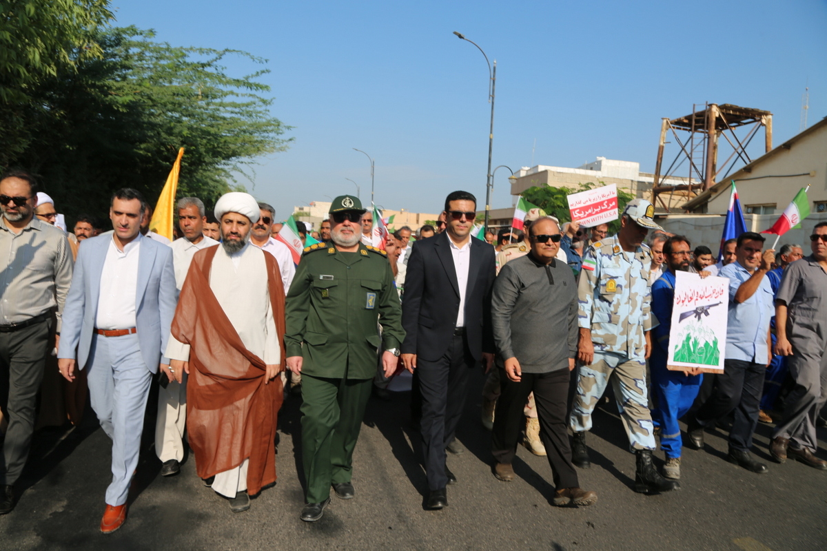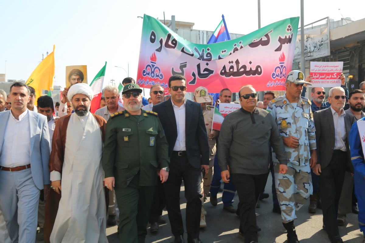 به گزارش پایگاه اطلاع رسانی شرکت پایانه های نفتی ایران، کارکنان شرکت پایانههای نفتی ایران در مناطق عملیاتی خارگ و پارس جنوبی، با حضور پرشور در راهپیمایی ۱۳ آبان، ضمن اعلام همبستگی خود با آرمانهای انقلاب اسلامی، یاد و خاطره شهدای دانشآموز را گرامی داشتند. این حضور، نمادی از تعهد کارکنان صنعت نفت به ارزشهای انقلاب و حمایت از آرمانهای ملت ایران است. شرکتکنندگان در این راهپیمایی با شعارهای استکبارستیز، بر عزم و اراده خود در دفاع از استقلال و عزت ملی تأکید کردند.